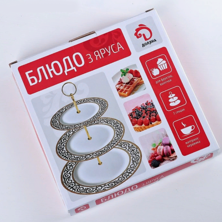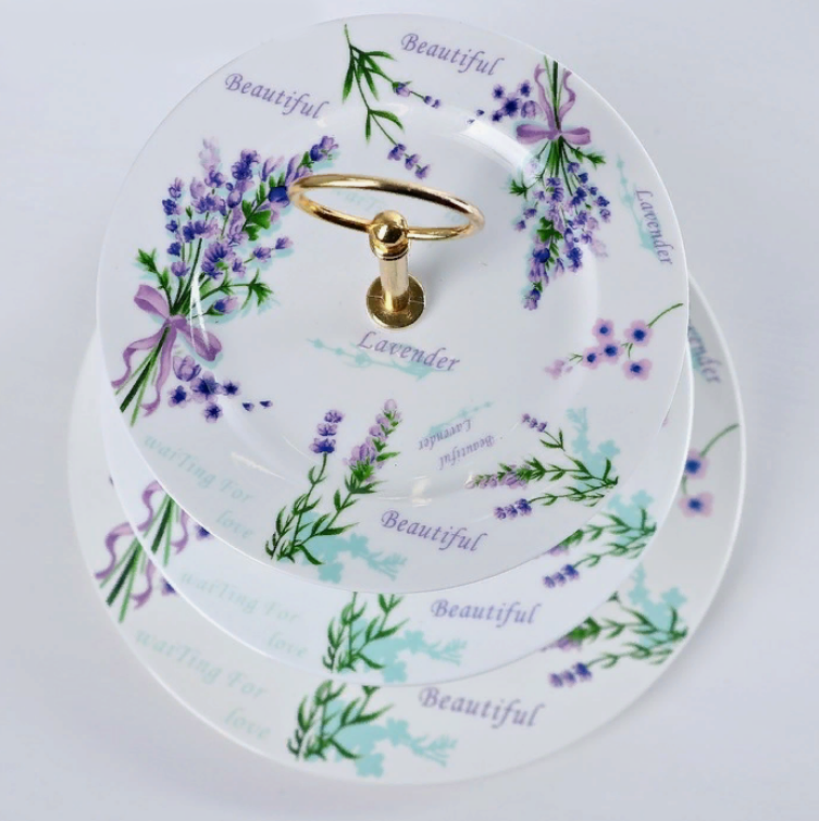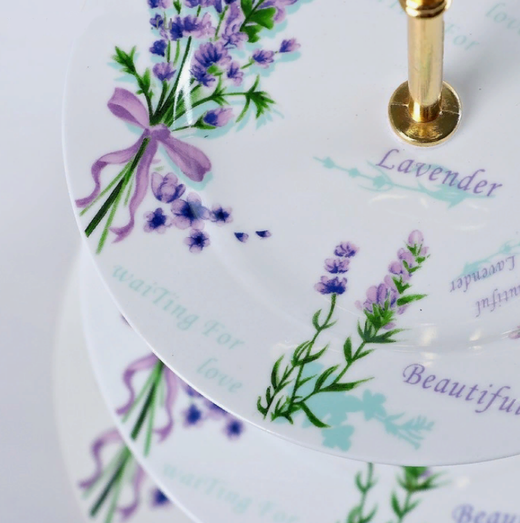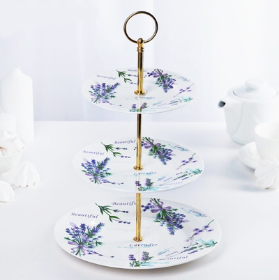 Блюдо фарфоровое 3-х ярусное Лаванда Прованс, 15*18*23 см - практичный и недорогой подарок для милых дам к 8 Марта, к 14 февраля, ко дню рождения!