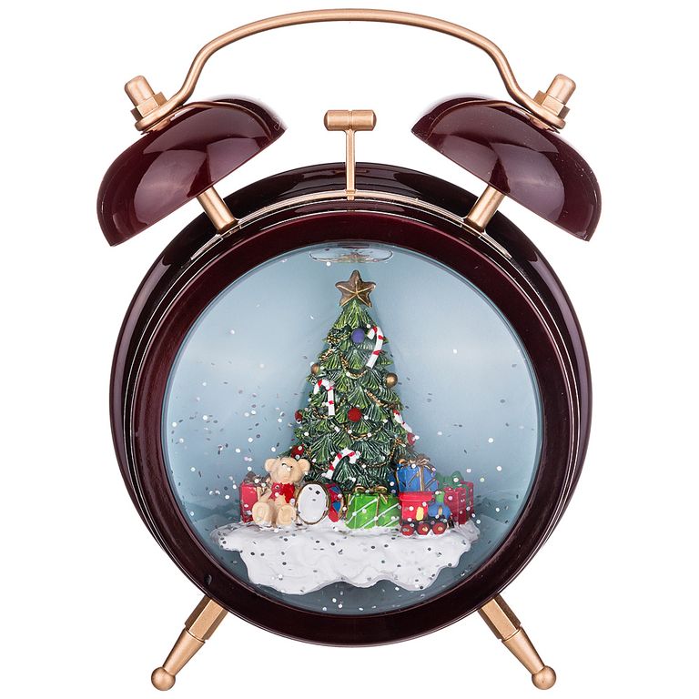 Будильник музыкальный с Елью в шаре со светом, 14*18см- это Новогодний сувенир с движущимся снегом, который станет самым запоминающимся и любимым подарком для детей и взрослых.