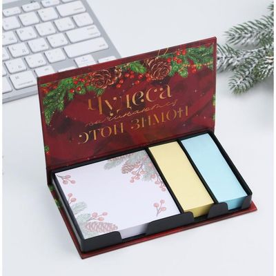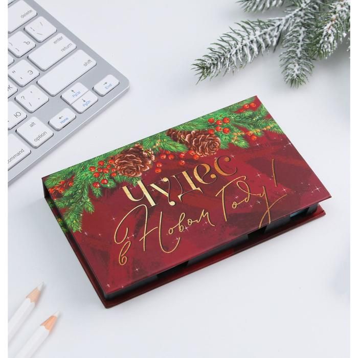 Бумажный блок в пластиковом футляре «Чудес в Новом году!», 100 листов + 2 стикера станет оригинальным подарком к Новому году для девушек и женщин, для студенток, учителей и офисных сотрудников, для творческих людей к любому празднику!