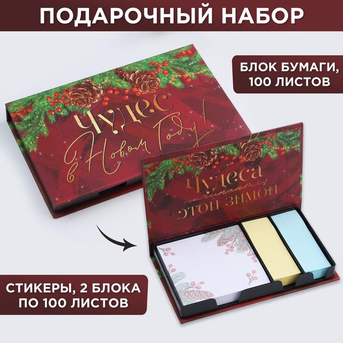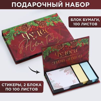 Бумажный блок в пластиковом футляре «Чудес в Новом году!», 100 листов + 2 стикера станет оригинальным подарком к Новому году для девушек и женщин, для студенток, учителей и офисных сотрудников, для творческих людей к любому празднику!