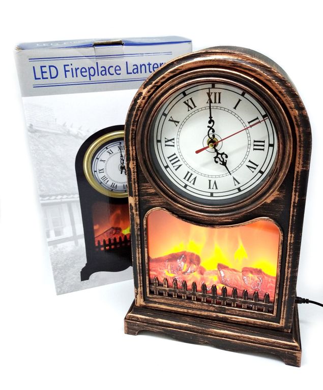 Фонарь большой с имитацией огня "Камин с часами", 41*25*14см - декоративный светильник-ночник с имитацией огня как в настоящем камине! Такой новогодний фонарь-камин с кварцевыми часами станет самым запоминающимся и любимым подарком для детей и взрослых!