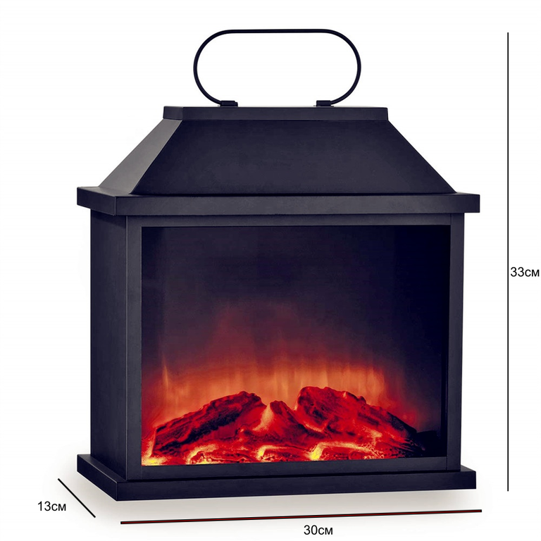 Фонарь Камин с USB кабелем, 33*30*13см - декоративный светильник-ночник с имитацией огня как в настоящем камине! Такой новогодний фонарь-камин станет самым запоминающимся и любимым подарком для детей и взрослых!