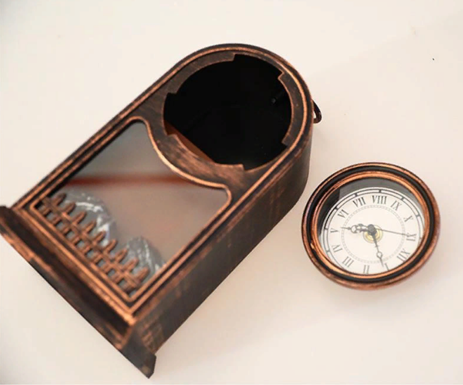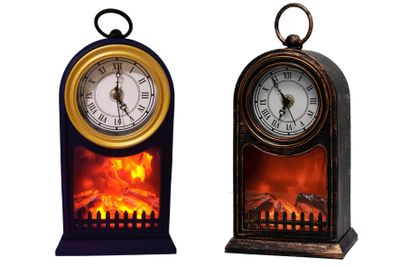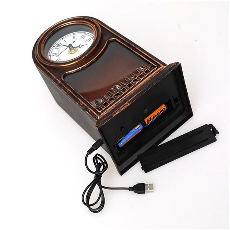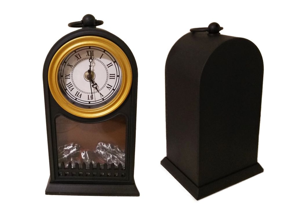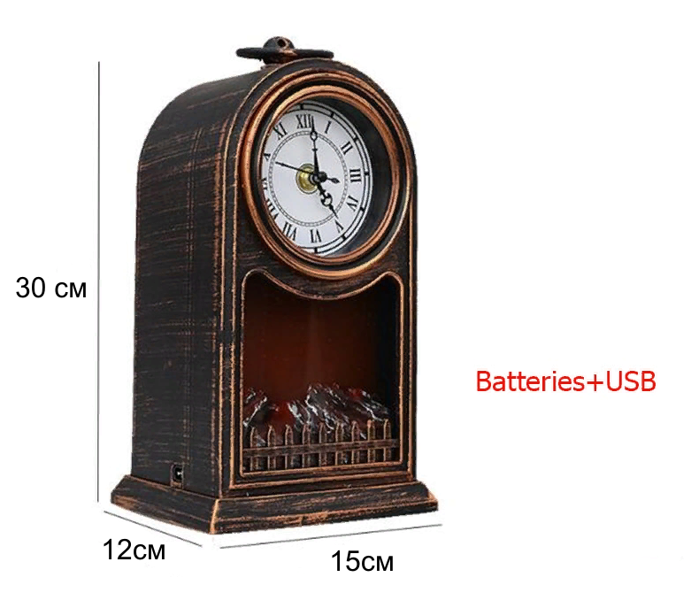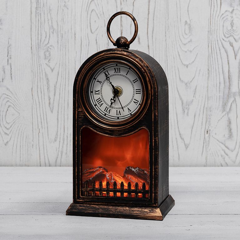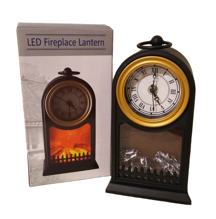 Фонарь с имитацией огня "Камин с часами", 30*15*12см (ЦВЕТ: Бронза, Черный)