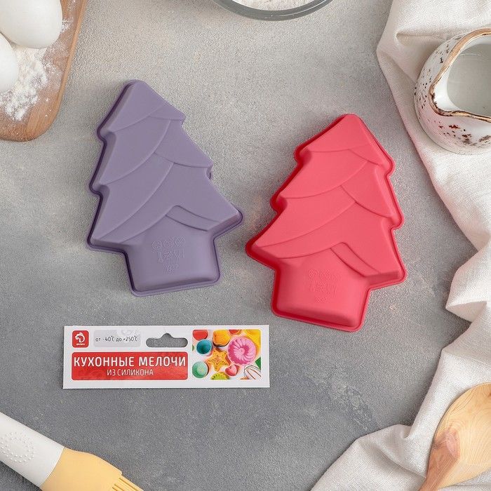 Форма силиконовая для выпечки «Ёлочка», 13×10 см, цвет в ассортименте - это недорогой и практичный Новогодний подарок!