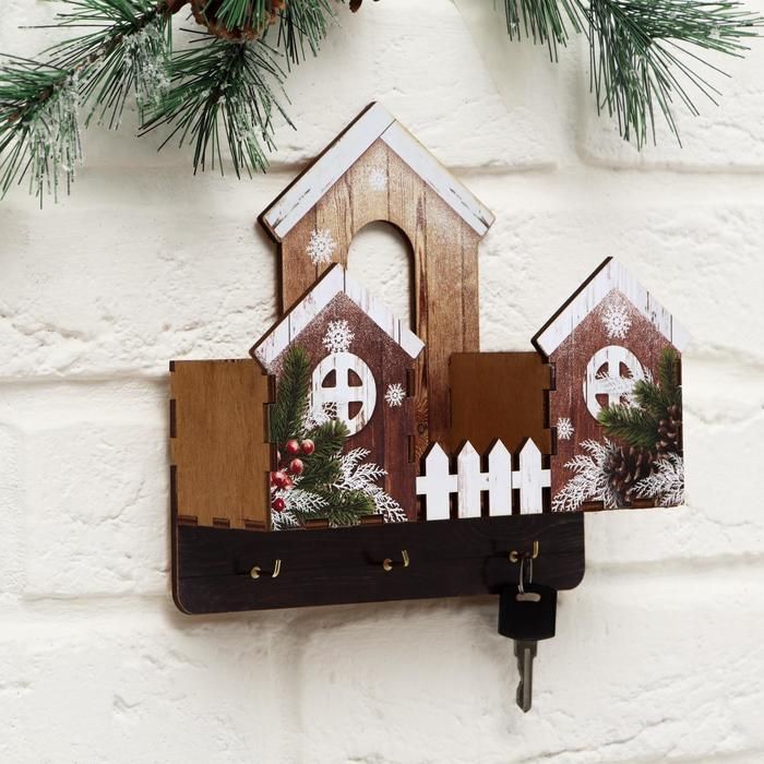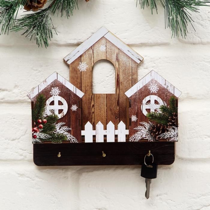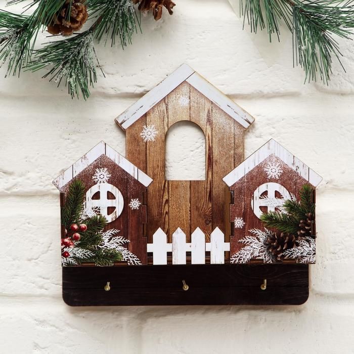 Ключница новогодняя с полкой "Домики", 22 х 20 см - оригинальный и практичный подарок к Новому году для украшения вашего дома!