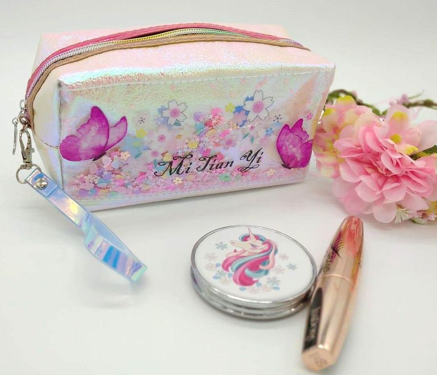 Косметичка женская с голографическим и шейкер эффектом на молнии, 18*9,5*7,5см, Цвет: Розовый, Синий, Золотистый, Малиновый