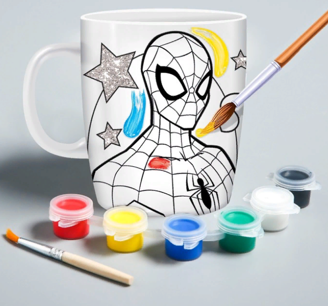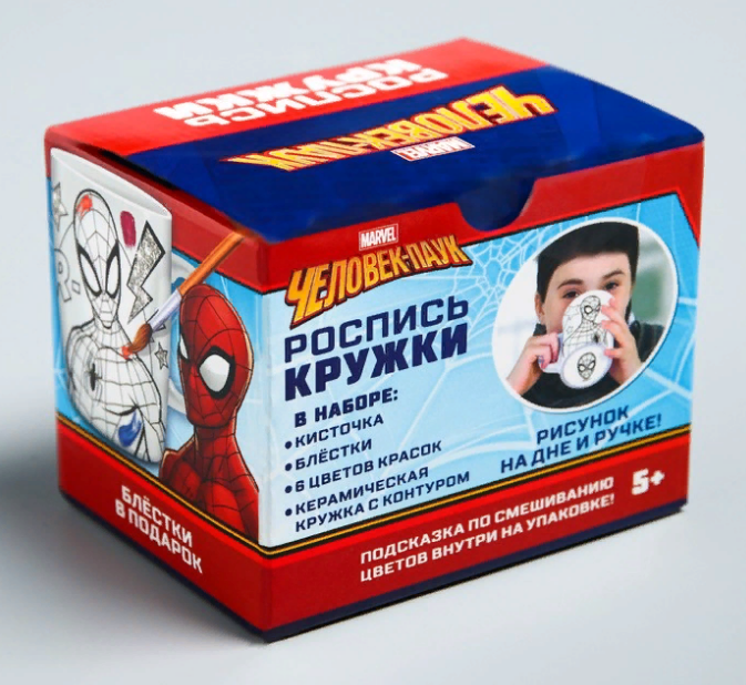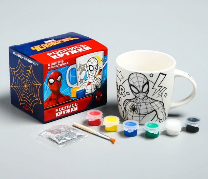 Кружка под роспись «Spider-Man» Человек-Паук 250 мл - это недорогой и практичный для детского творчества!
