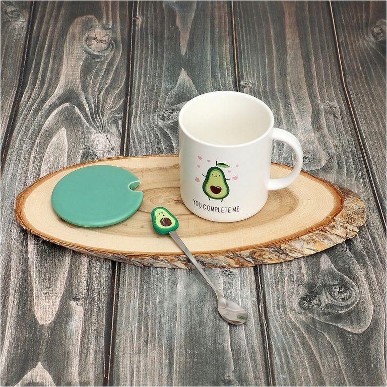Кружка с крышкой и с ложкой Авокадо "You Complete Мe", 410 мл
