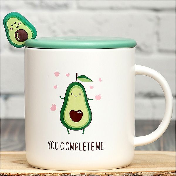 Кружка с крышкой и с ложкой Авокадо "You Complete Мe", 410 мл - прикольная кружка, которая вдохновит каждого!