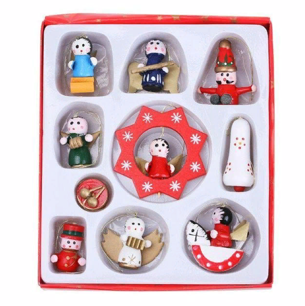 Набор деревянных елочных игрушек 10шт/уп - оригинальный и творческий Новогодний сувенир для детей!