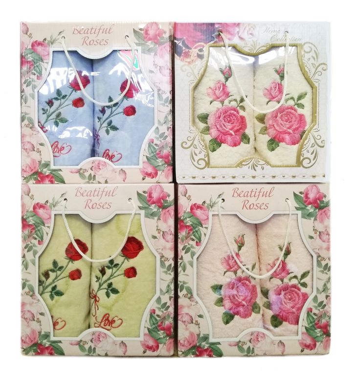Набор махровых полотенец для рук с вышивкой Розочки, 35х35 и 35х75 см