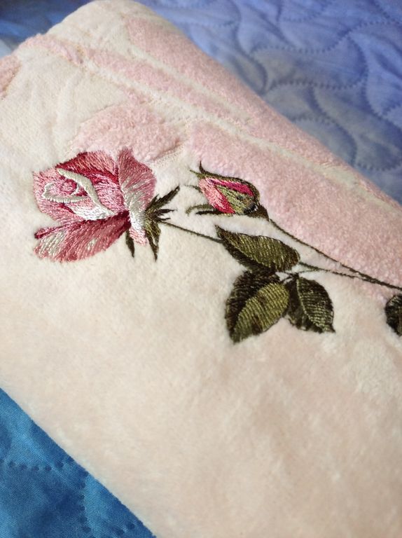 Набор махровое полотенце и кухонная салфетка с вышитым рисунком в виде розы - замечательный подарочный набор для милых дам к 8 Марта, к 14 февраля и к любому другому празднику!