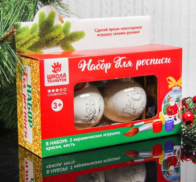 Набор новогодних шаров под раскраску 2 шт + краска 6 цв по 2 мл, кисть