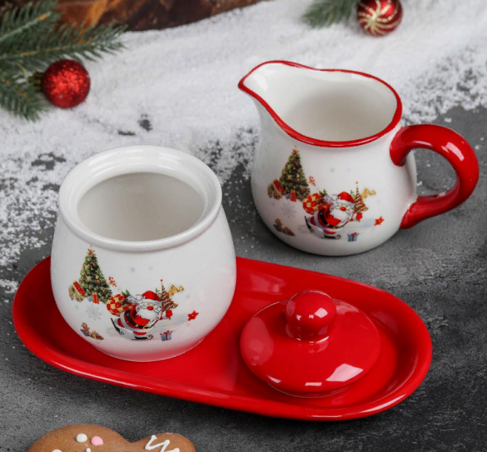 Набор новогодний «Навстречу Новому году», 2 предмета: молочник 270 мл, сахарница 310 мл - это нпрактичный Новогодний подарок, который украсит любой праздничный стол!