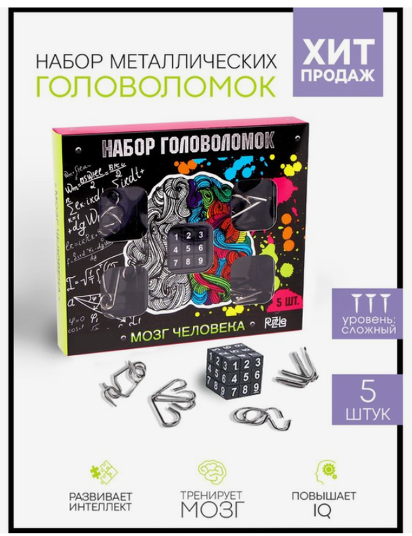 Головоломка металлическая «Мозг человека» набор 5 шт.