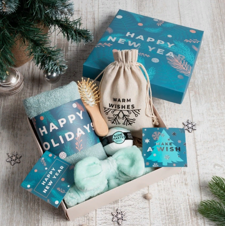 Набор подарочный "Happy new year" с банными аксессуарами, Бирюзовый (5 предметов)