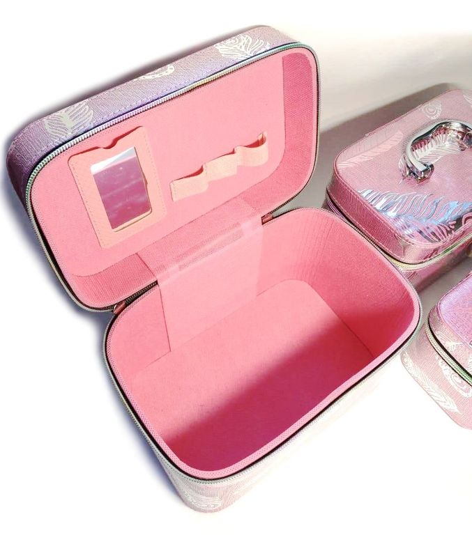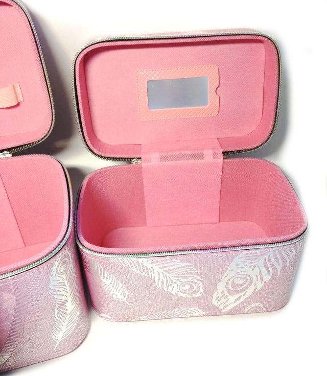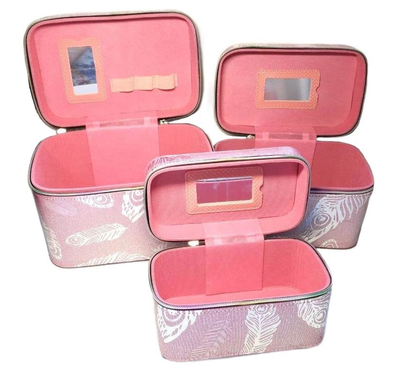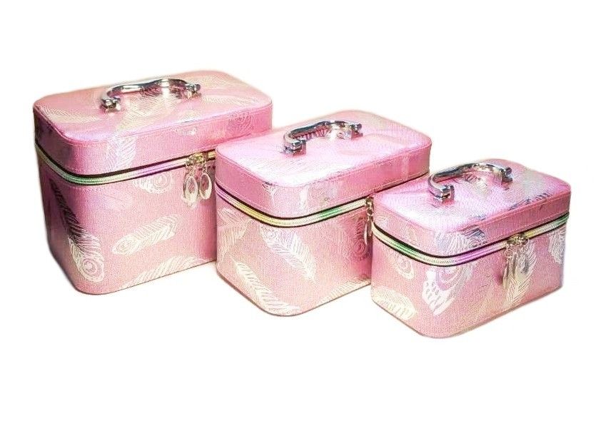 Набор Шкатулок для хранения косметики, 3шт, Цвет Розовый, Голубой, Серебро