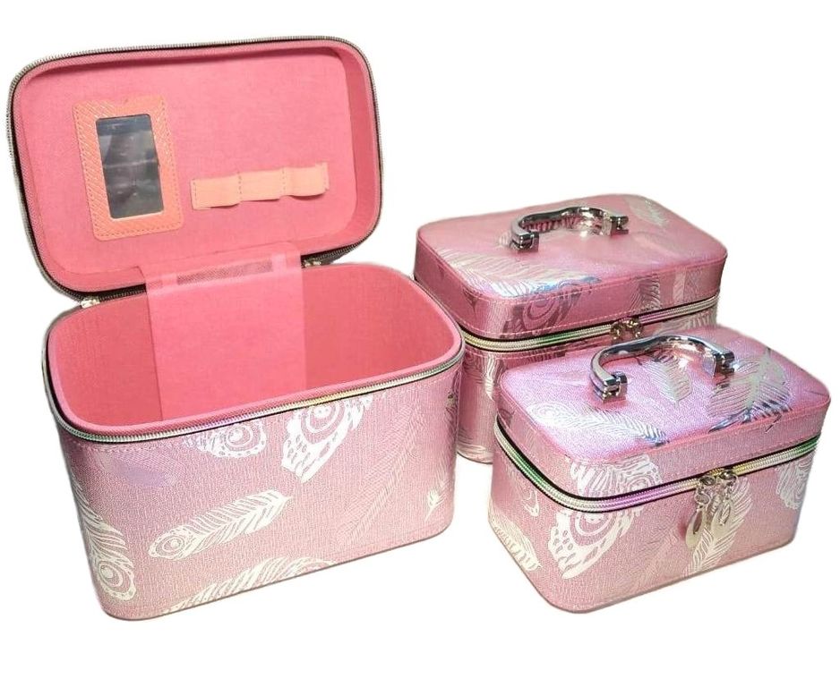 Набор Шкатулок для хранения косметики, 3шт, Цвет Розовый, Голубой, Серебро - лучший подарок для девушек к любому празднику от 8 Марта до дня рождения!