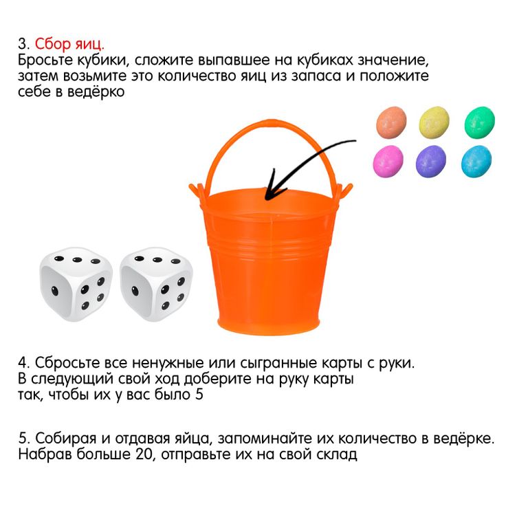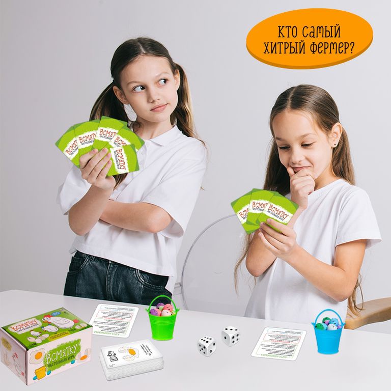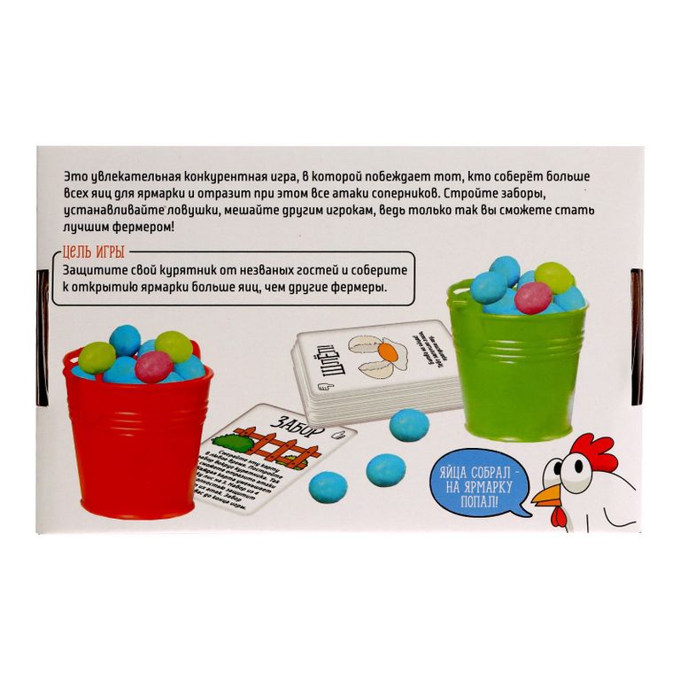 «Всмятку» — это увлекательная настольная игра для самых быстрых и ловких участников! Нужно собрать больше всех яиц для ярмарки и дать отпор всем атакам соперников. Стройте заборы, расставляйте ловушки, становитесь самым лучшим фермером!