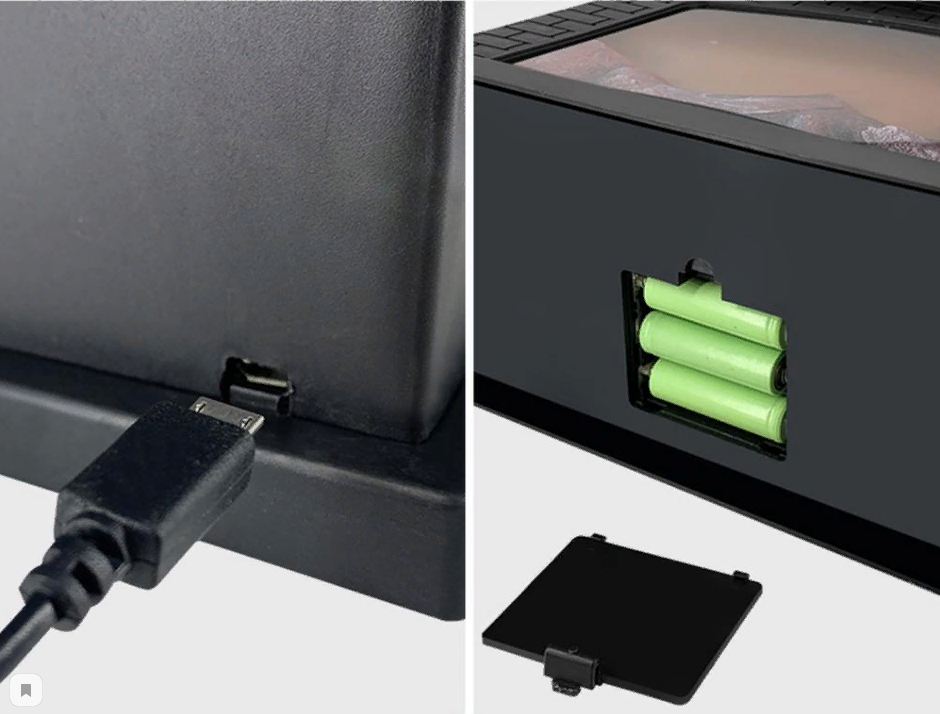 - Работает от батареек и USB-порта от сети