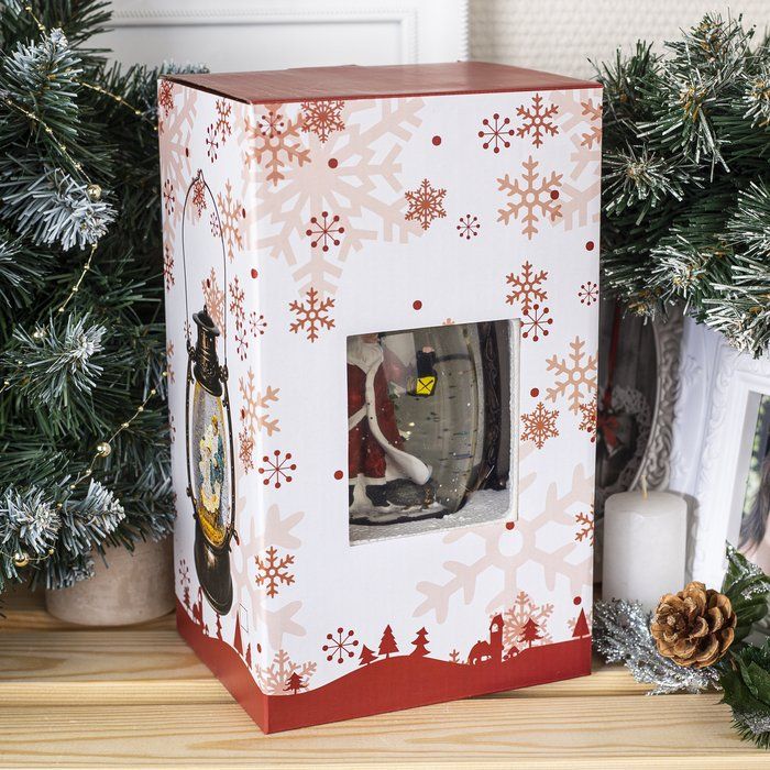 Новогодний музыкальный фонарик "Дед Мороз" со снегом и USB кабелем, 25х10х10см (6 видов)