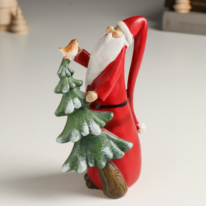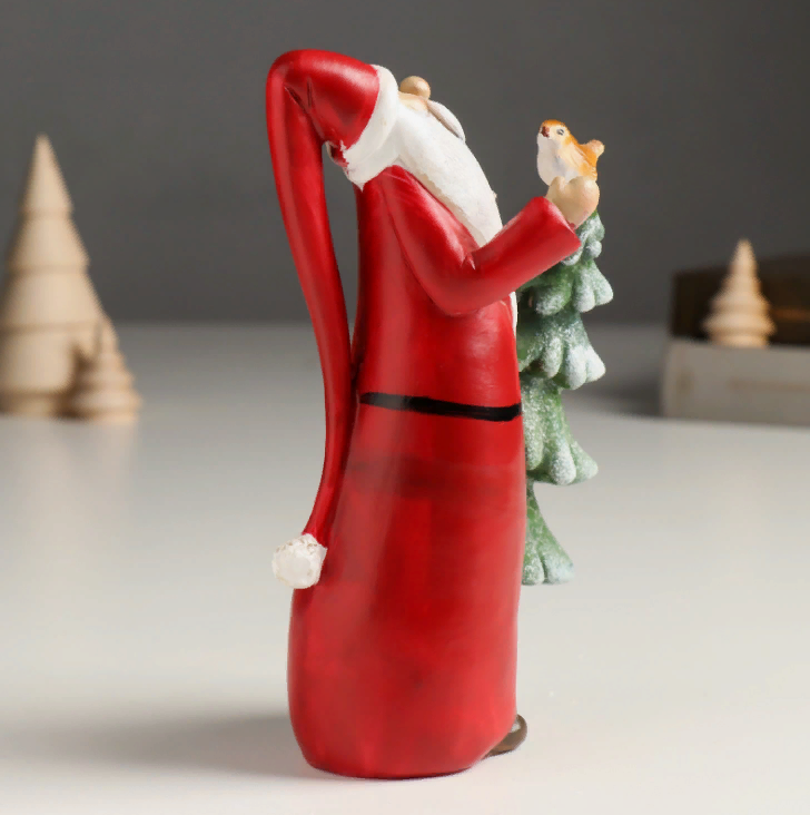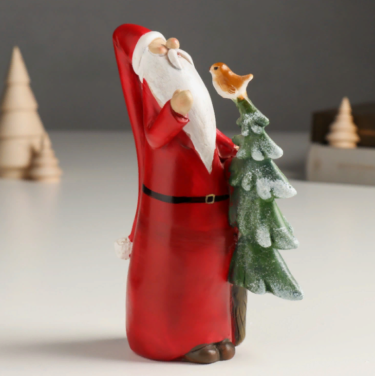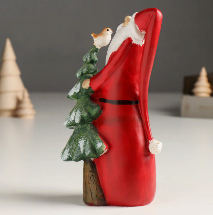 Новогодний сувенир "Дед Мороз с ёлочкой и птичкой" 6х6х17 см - станет отличным подарком к Новому году для детей и взрослых, украсит любую комнату и создаст уют и праздничное настроение!