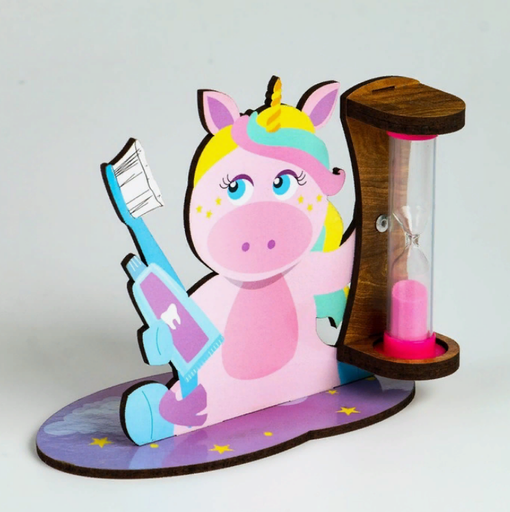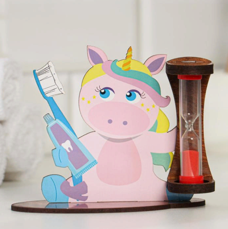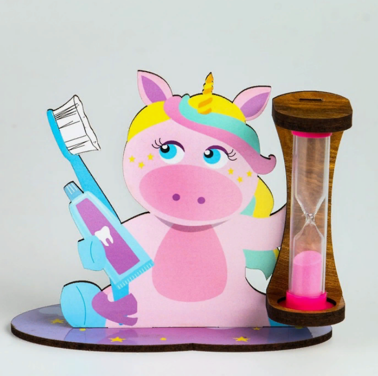 Песочные часы для чистки зубов "Единорог", таймер 3 минуты станет оригинальным подарком для детей ко дню рождения и к любому другому празднику!