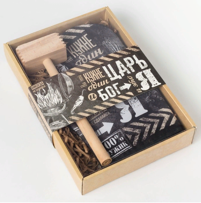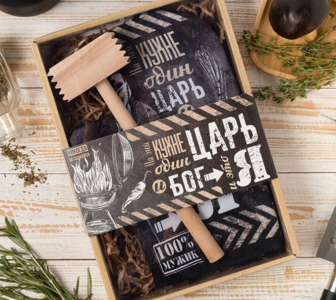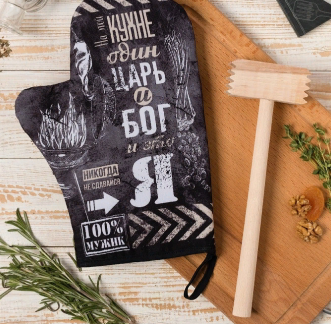 Подарочный мужской набор "Царь на кухне", варежка-прихватка 20х28см, молоток деревянный станет оригинальным подарком для мужчин к 23 февраля, ко дню рождения!