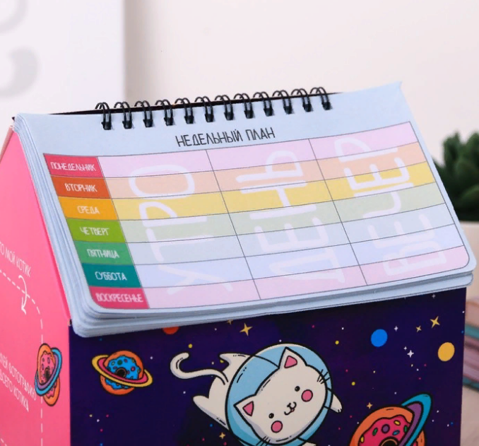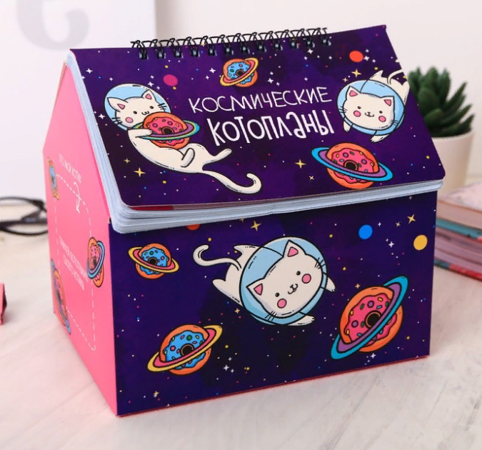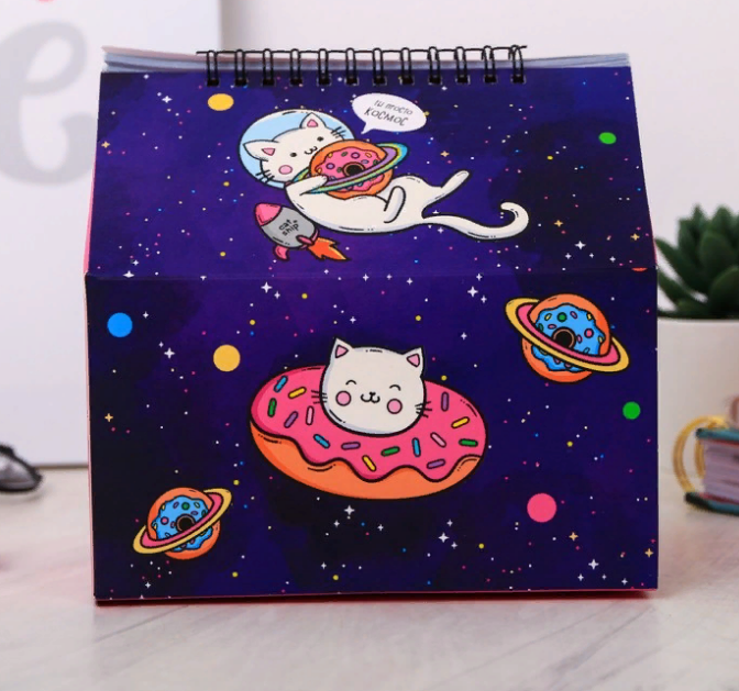 2в1- Подставка для канцелярских принадлежностей и планинг "Космокот" на 50 листов станет оригинальным подарком для школьников, студентов, учителей и офисных сотрудников, для творческих людей к любому празднику!
