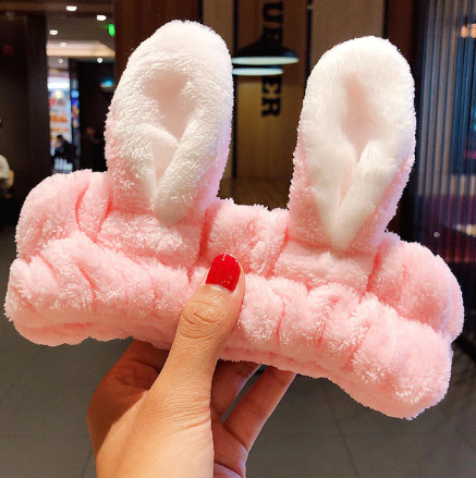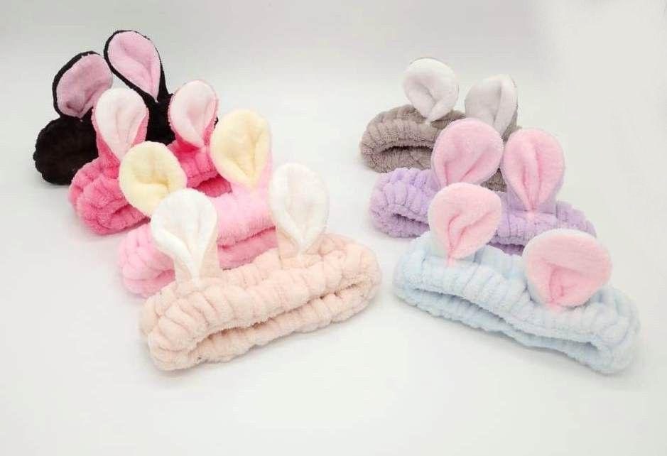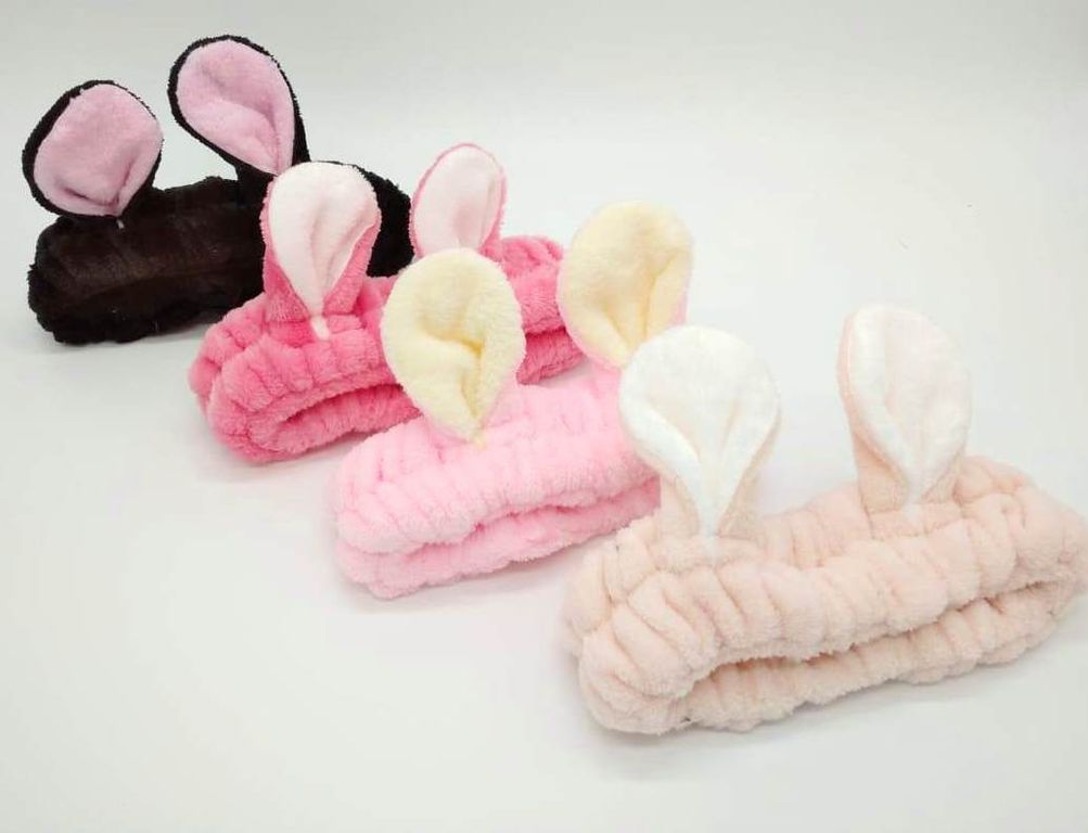 Повязка женская для волос флисовая мягкая с ушками, Цвет: Розовый, Голубой, Сиреневый, Черный, Малиновый, Бежевый, Коричневый