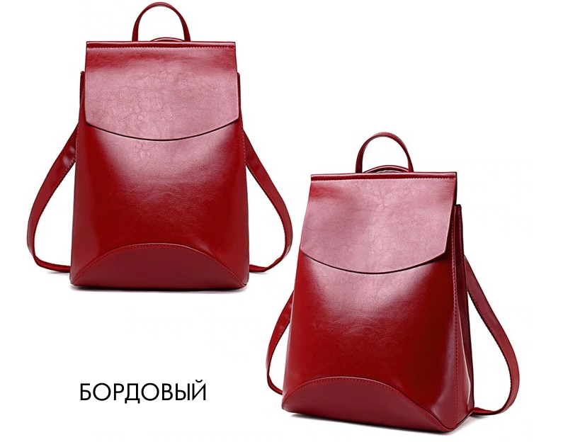 Рюкзак-сумка French из натуральной кожи + ПОДАРОК, Цвет: Бордовый, Черный, Синий, Платина, Красный, Белый
