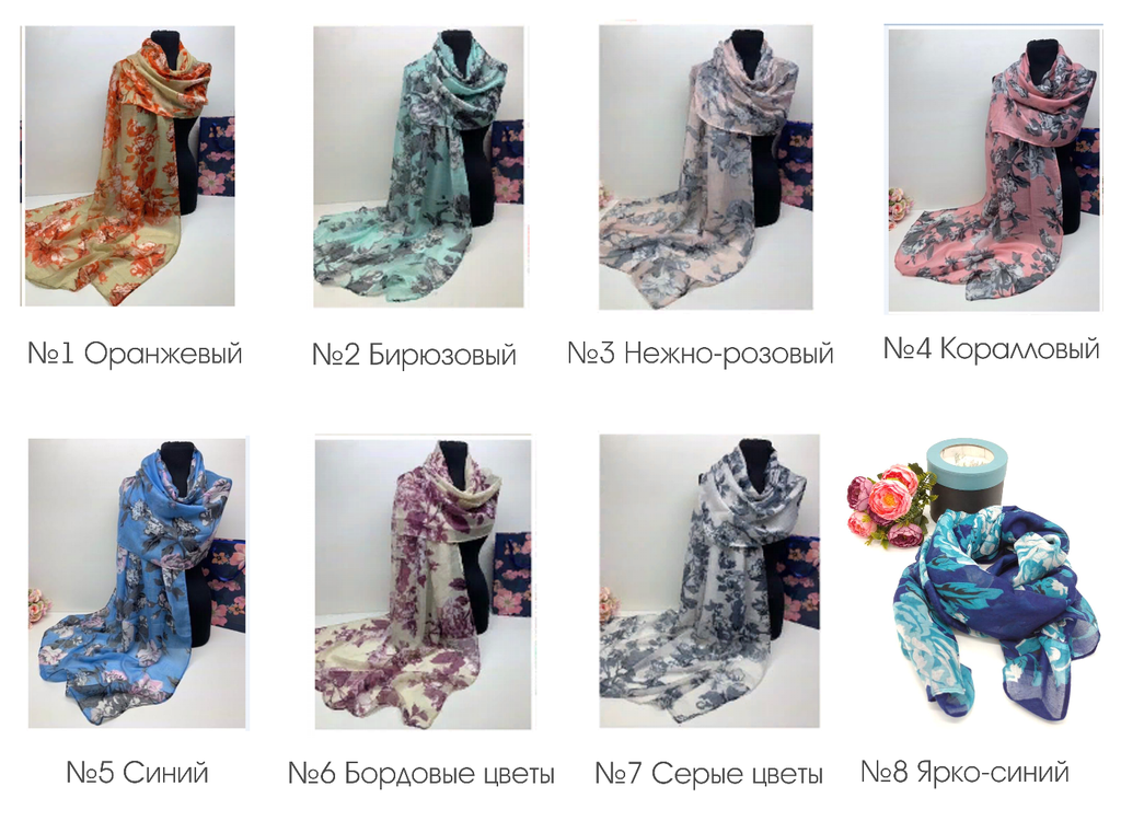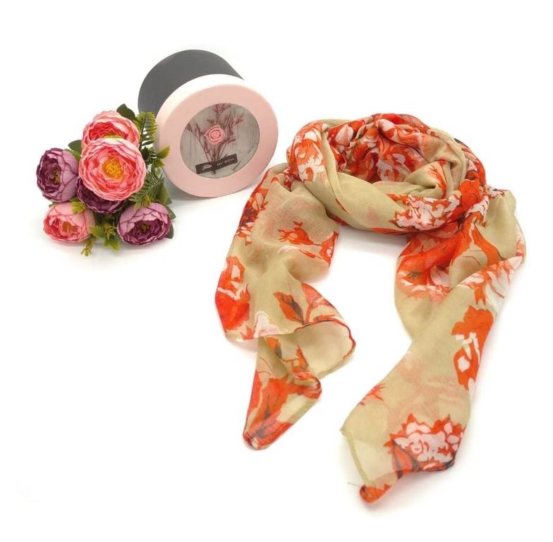 Шарф "Розы" женский Zaro в подарочной коробочке, 100% хлопок, 175х80см (9 расцветок) - оригинальный и практичный подарок для милых дам к 8 Марта, ко дню рождения и к любому празднику!