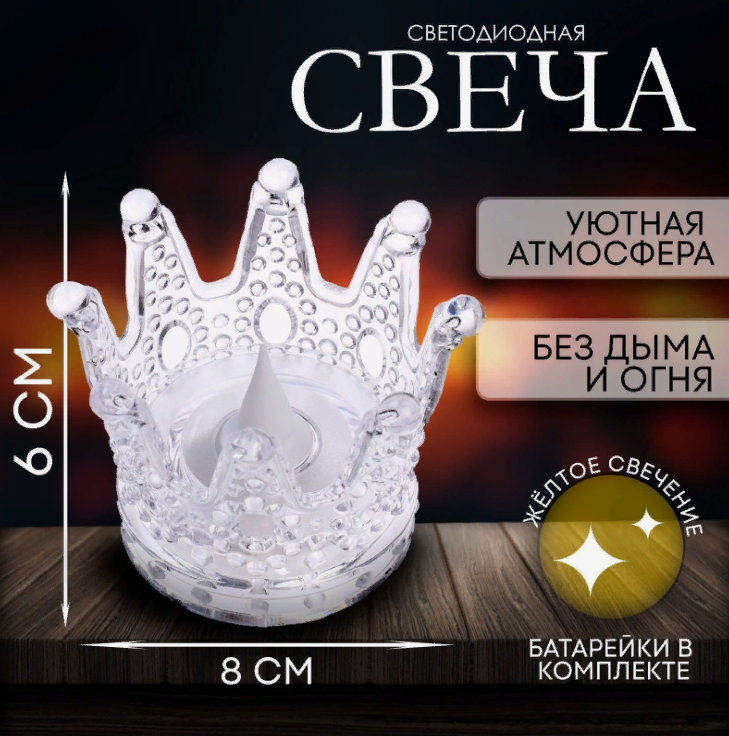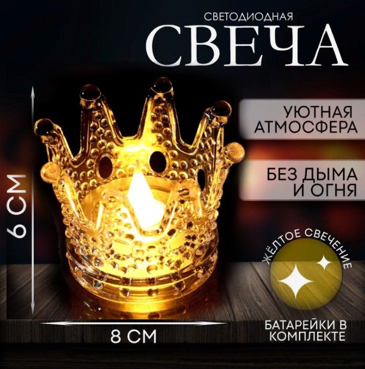 Электронная новогодняя свеча «Корона» с жёлтым свечением, 6 см х 7 см х 8 см- оригинальный ночник к Новому году для украшения вашего дома!