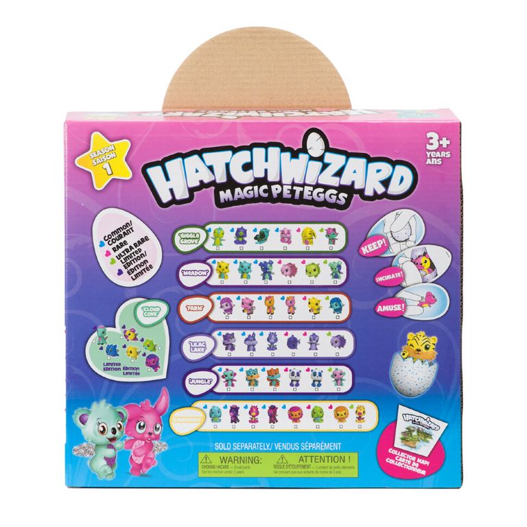 HatchWizard Magic Peteggs - это коллекционные игрушки, спрятанные в яйце. Набор состоит из нескольких яиц, фигурок и дерева. Теперь ваш ребенок сможет сотворить чудо сам, ведь благодаря этому яйцу через некоторое время из него появится забавный яркий зверёк. Но для начала крохе предстоит постараться и тщательно заботиться о своем новом питомце. Для повторной активации достаточно просто снова погреть яйцо. Благодаря такому процессу появления на свет и воспитанию любимца, дети научатся заботиться об окружающих и нести ответственность за малыша.