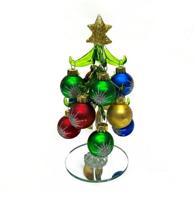 Ёлка стеклянная 12 шаров, H-15см (№4)