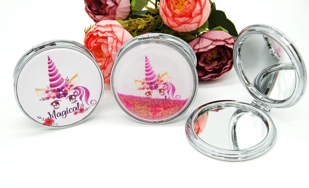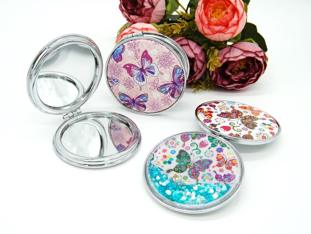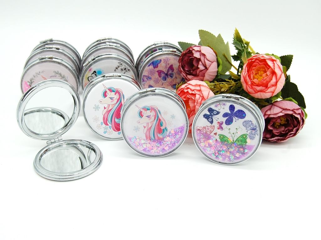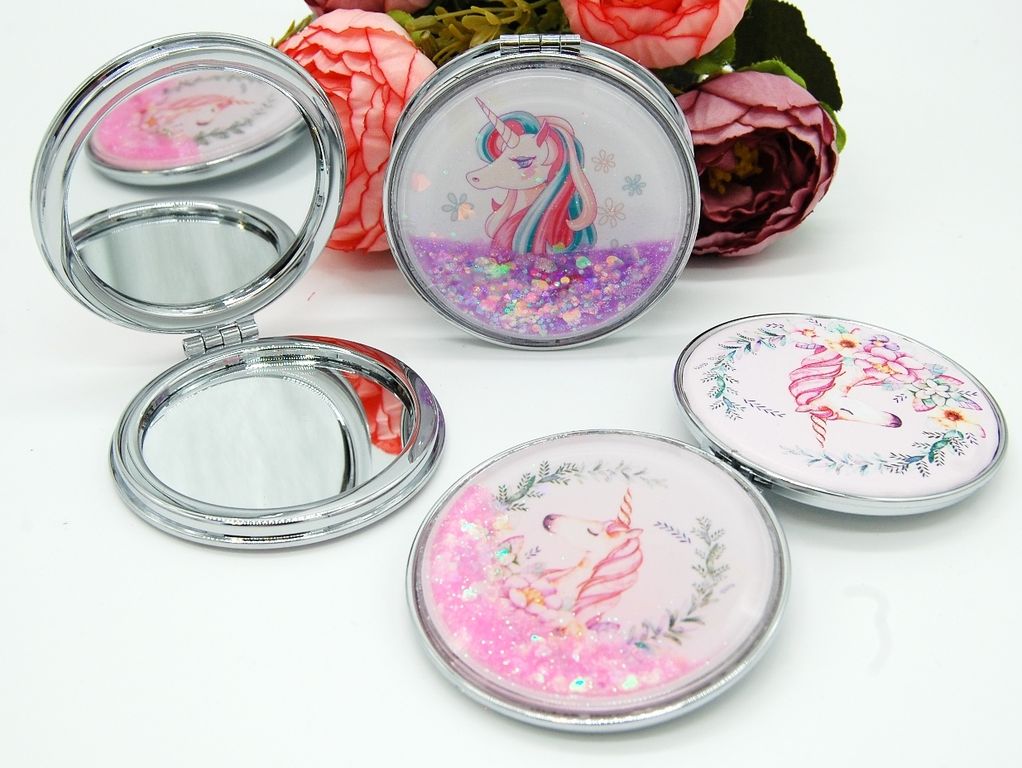 Зеркальце карманное двойное с блестками (ТИП: Бабочки, Единорог)