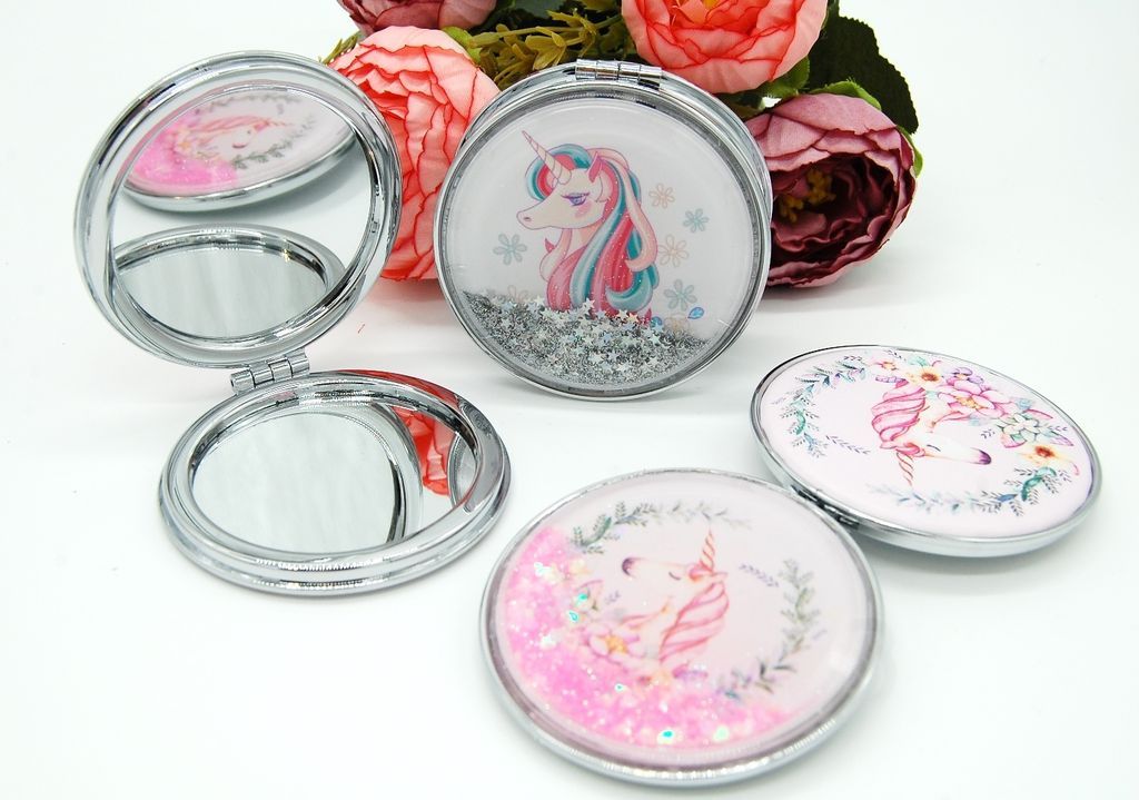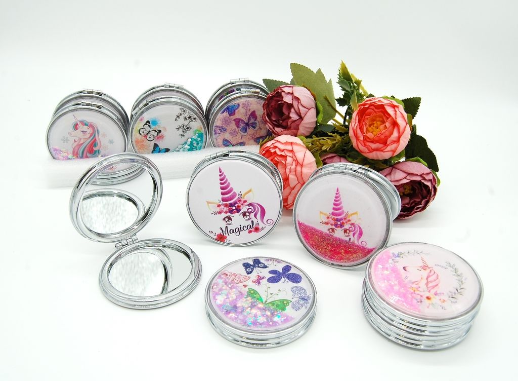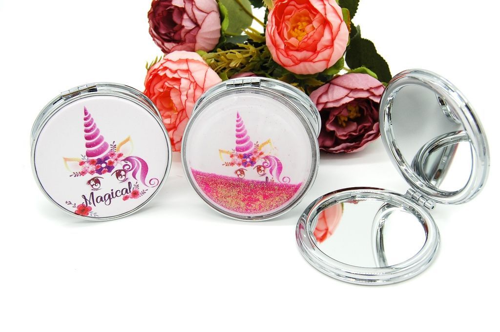 Зеркальце карманное двойное с блестками (ТИП: Бабочки, Единорог)