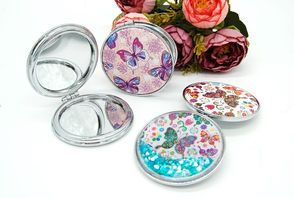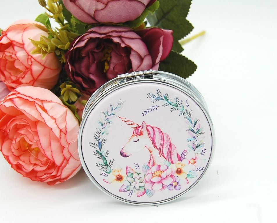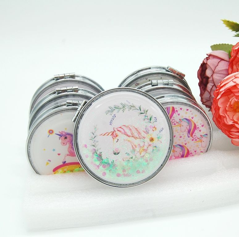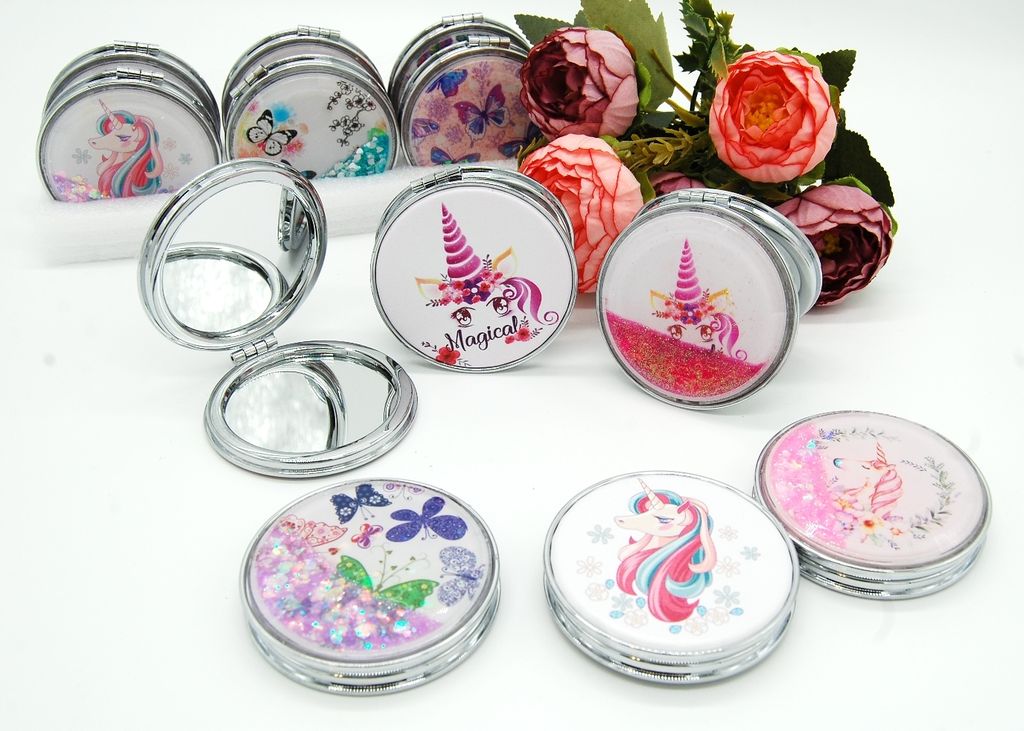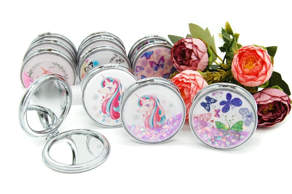 Зеркальце карманное двойное с блестками (ТИП: Бабочки, Единорог)