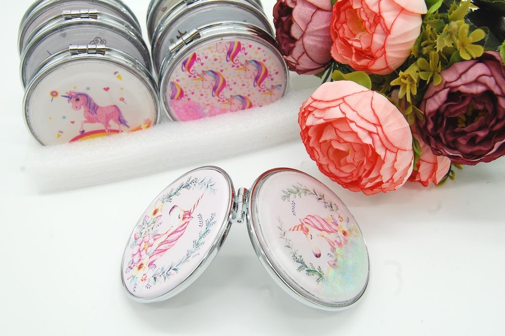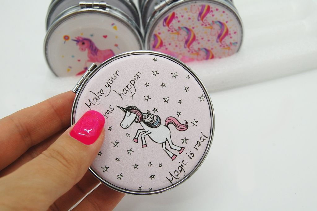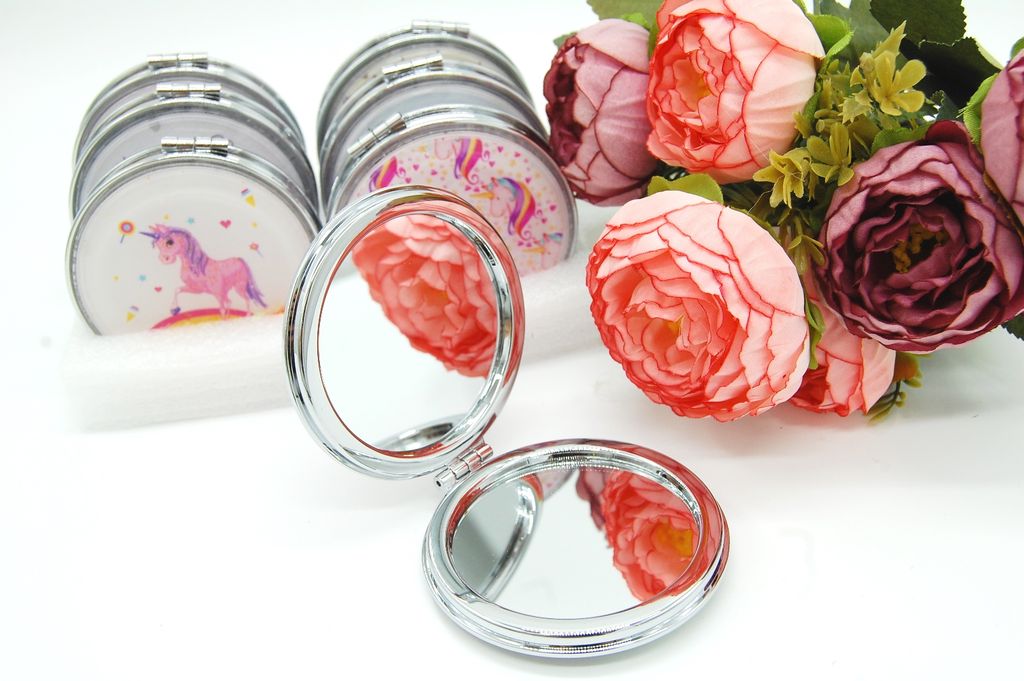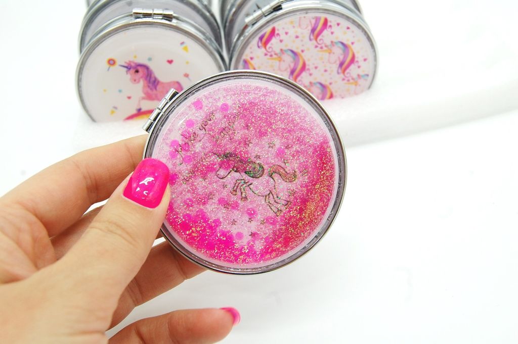 Зеркальце карманное двойное с блестками (ТИП: Бабочки, Единорог)
