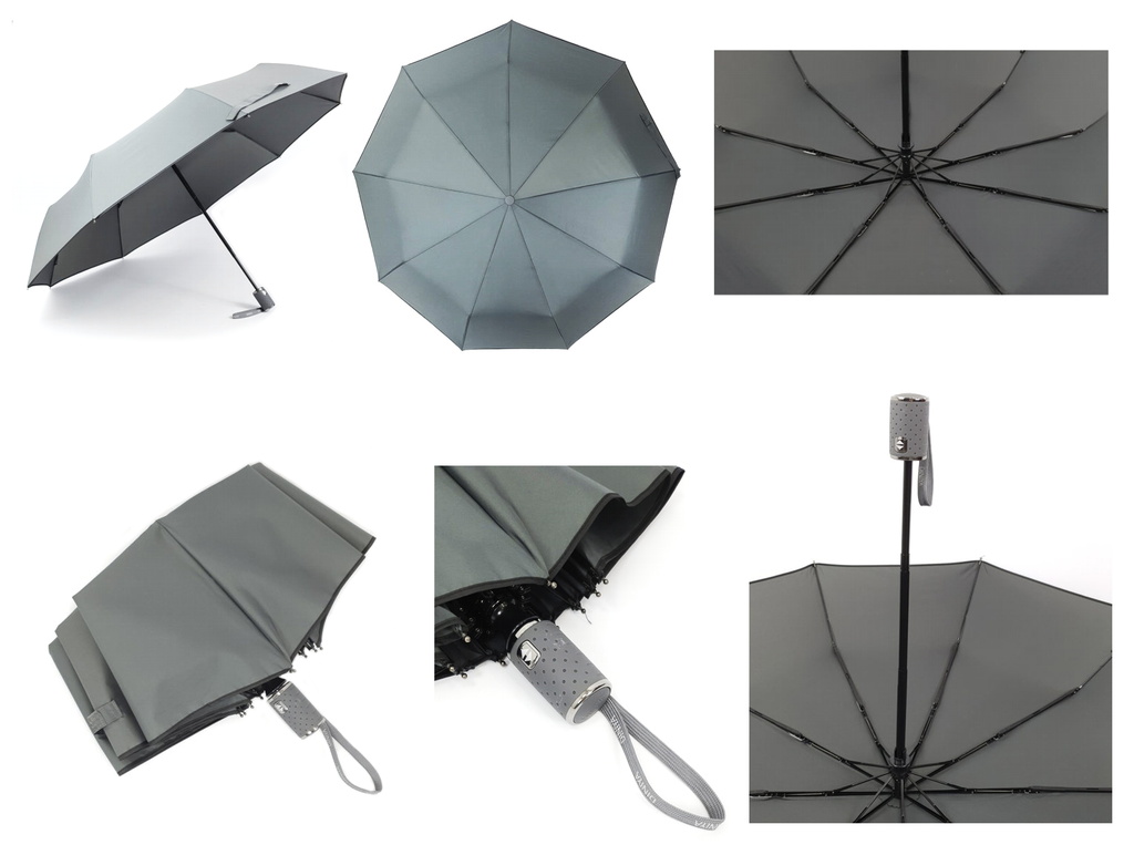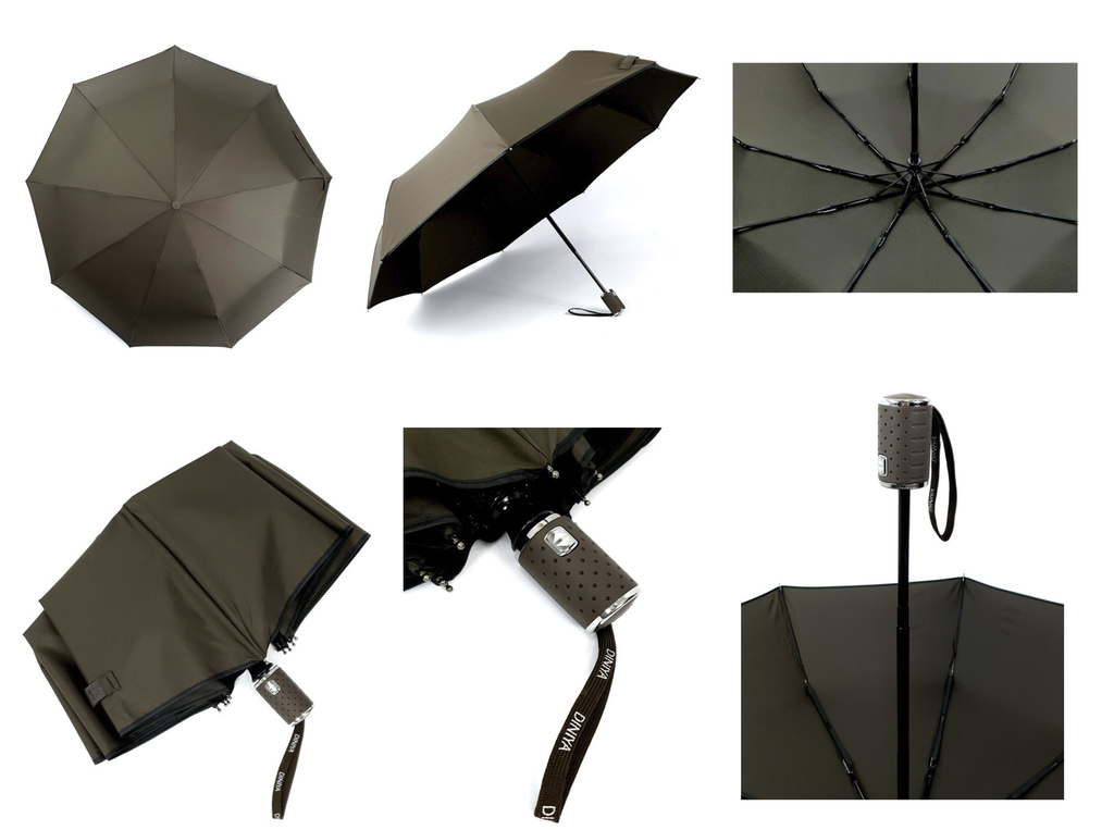 - Зонт в четырех расцветках - коричневый, серый, синий и черный.