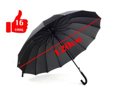 Зонт-трость 16 спиц - это шикарный подарок для мужчин к любому празднику (от 23 февраля до юбилея), а так же данный зонт можно использовать как семейный зонт для совместных прогулок!