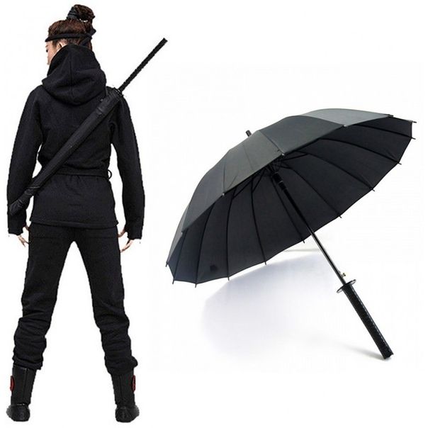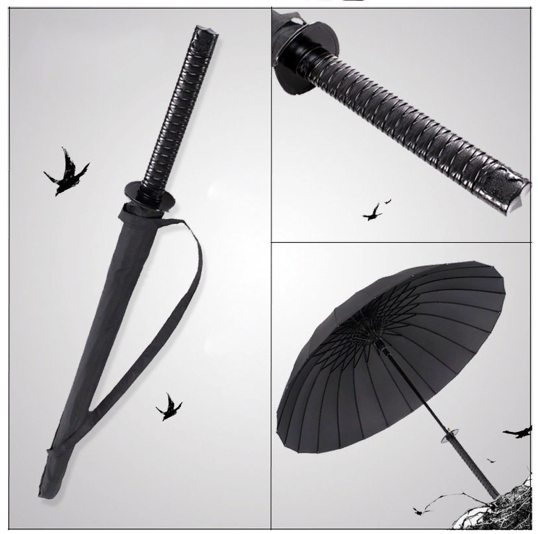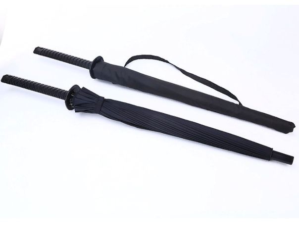 Зонт в виде самурайского меча был создан дизайнерами Брюсом и Стефани Тарп. Оригинальное название Samurai Sword Umbrella. Качественный и крепкий зонт с диаметром купола 104 см и длиной 98 см. Зонт меч - отличный подарок поклонникам фильмов про самураев. Рукоятка зонта меча имитирует рукоять самурайского меча катаны. Такой зонт привлечет к вам множество любопытных взглядов. Зонт можно носить за спиной на лямке.