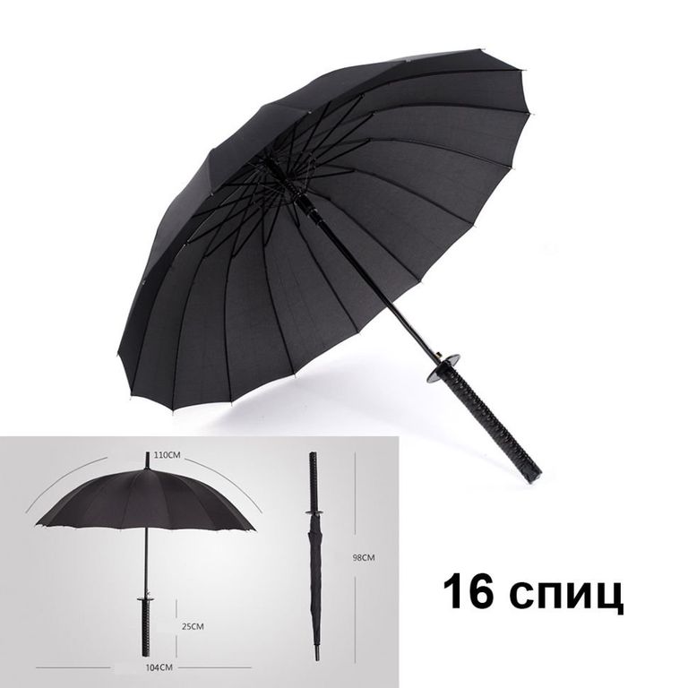 Зонт Меч самурая KATANA 16 спиц- совмещает в себе такие качества подарка как практичность и оригинальность. Что может быть практичнее зонта, но зонт есть у всех, а зонт Катана - новинка, которая сможет Вас выделить из серой толпы.