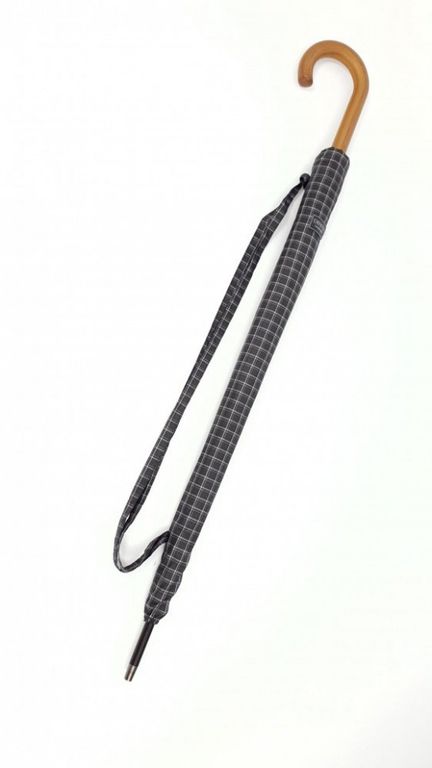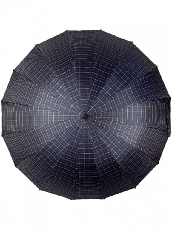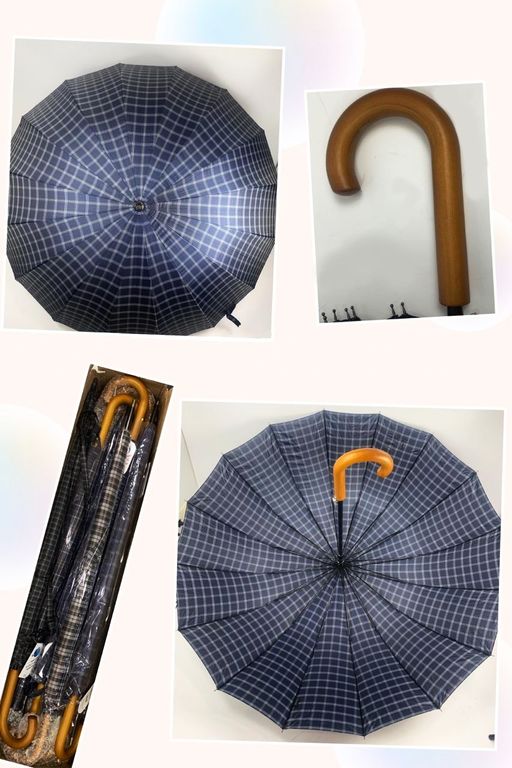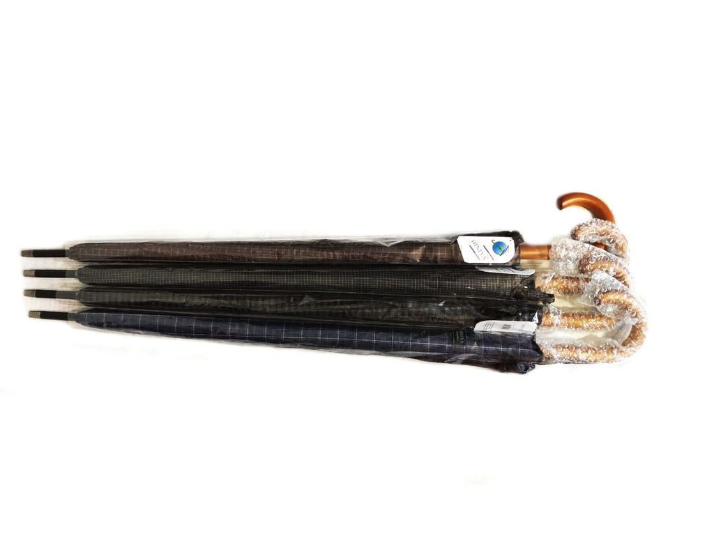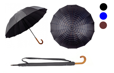 Зонт-трость в клетку с деревянной ручкой DINIYA полуавтомат, 16 спиц, Цвет: Черный, Синий, Коричневый