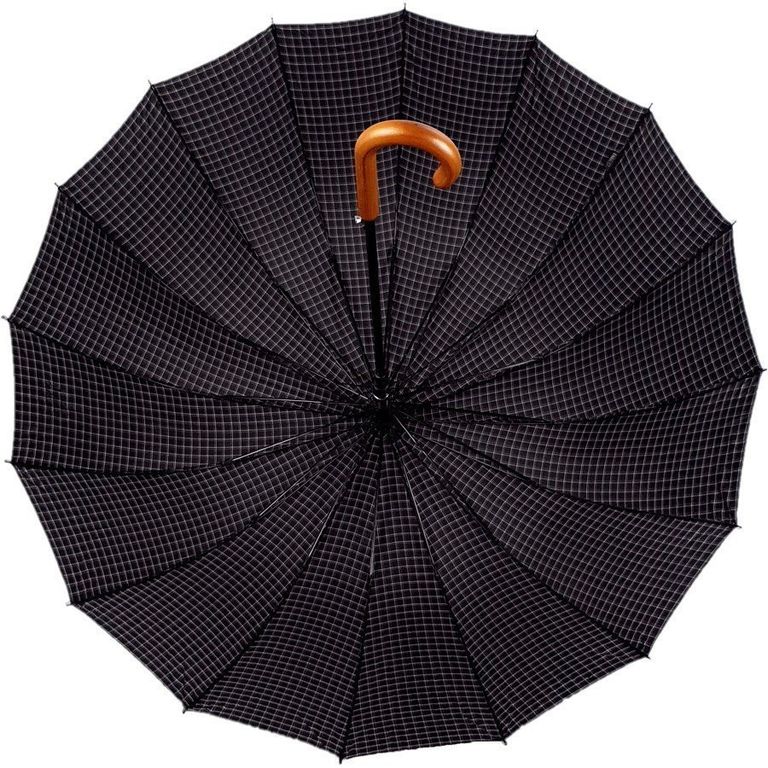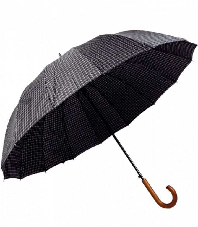 Зонт-трость в клетку с деревянной ручкой DINIYA полуавтомат, 16 спиц - это шикарный подарок для мужчин к любому празднику (от 23 февраля до юбилея), а так же данный зонт можно использовать как семейный зонт для совместных прогулок!